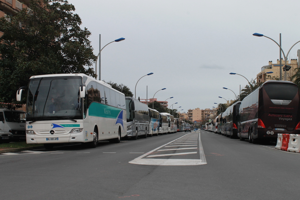 Un citron grimé en Chinois, il ne faut y voir aucune blague de mauvais goût, ce n’est que le thème de la 82ème Fête du Citron. La Fête du Citron mobilise 300 personnes, qui transportent et entreposent 140 tonnes d’agrumes dans la ville, dans le but d’écouler les 250 000 places disponibles. Autant de chiffres que la mairie de Menton se plaît à communiquer dans un dossier des plus exhaustifs – la longueur de buis tressés utilisée y est détaillée. Mais le document omet certains aspects, plus dommageables, de l’événement. Par dommages, comprenez non pas les répercussions sur les commerces de la ville, mais sur la vie des locaux. Pendant les 19 jours de fête, c’est presque l’équivalent de l’ensemble de la population mentonnaise qui débarque dans cette commune de 29 000 habitants. Alors forcément lorsqu’il y a une telle affluence, le climat est plus étouffant. Pour cette habitante du quartier du Borigo, la Fête du Citron est synonyme de contraintes dans sa vie de citadine: « Avec les touristes, toutes les places sont prises par les bus, impossible de se garer. Du coup pour aller dans le centre c’est un cauchemar. Quand on veut aller faire ses courses par exemple, c’est suicidaire de prendre sa voiture, aucune chance de trouver une place. » Dans ce quartier excentré des principales animations, ce ne sont pas moins de 80 bus qui réquisitionnent les places de voitures. Bus qui ont acheminé des centaines de touristes de toute l’Europe, repartant pour la plupart en fin de journée. Vers 18h30 les bus s’apprêtent à redémarrer pour leur nouvelle destination, l’Italie pour la plupart, où l’hôtellerie est moins coûteuse qu’en France. Ainsi, le lendemain, les places de stationnement se rempliront de nouveau au détriment des véhicules des habitants de la ville.