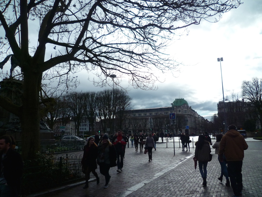 Arrivée dans la cité nordiste vers 13h. Nous passons devant l’hôtel Carlton, début d’un long fou rire dans la voiture, dont je vous épargnerai les détails. Après une pause-déjeuner, nous nous dirigeons vers le centre-ville, dont il faut souligner la beauté. Les rues principales sont noires de monde. Nous retrouvons enfin les autres Niçois, eux aussi en visite de la Grande Place. Enfin réuni, le groupe décide de partir pour Villeneuve D’Ascq, une commune limitrophe où se trouve le stade.