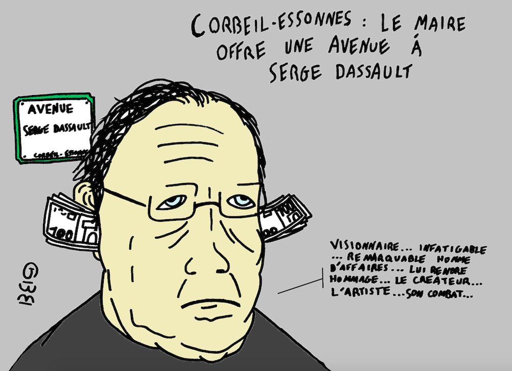 Le site Mediapart a diffusé et remis à la police des enregistrements réalisés clandestinement dans le bureau municipal de Serge Dassault en 2012. On peut y entendre l’intéressé faire l’aveu de dons occultes : « Là, je ne peux plus rien donner. Je ne peux plus rien sortir, c’est interdit. Je suis surveillé par la police. (…) Si c’est mal réparti, ce n’est pas de ma faute. Je ne vais pas payer deux fois. Moi, j’ai tout payé, donc je ne donne plus un sou à qui que ce soit ». Le nonagénaire est également visé par une enquête pour tentative de meurtre. Avoir son nom sur une avenue peut coûter cher en avocats.