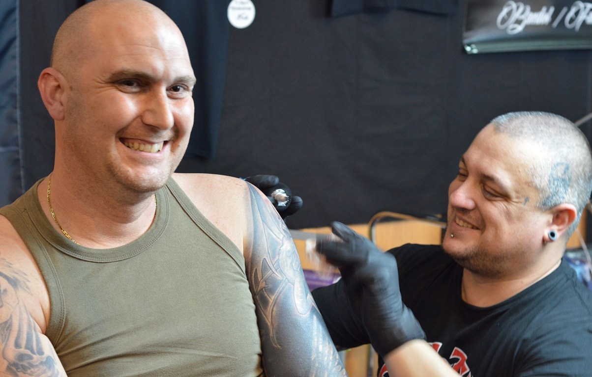 Le tatouage a été largement pointé du doigt lorsqu’il a émergé en France ; il a longtemps été le stigmate d’une certaine forme de débauche, ou considéré comme une marque de rébellion réprouvée par une majorité de la population, rétive à la propagation de cet art pourtant ancestral. Mais progressivement, depuis une trentaine d’années, le tatouage séduit de plus en plus d’individus, bien au-delà des classes populaires dans lesquelles il s’est d’abord installé. Du 6 au 8 mars 2015, Paris accueillait pour sa cinquième édition le Mondial du tatouage, réunissant quelques 300 artistes venus du monde entier . Dans le même temps, le Musée du Quai Branly présente une exposition qui lui est entièrement dédiée : Tatoueurs, tatoués, jusqu’au 18 octobre. Les événements mettant à l’honneur cet art singulier se sont multipliés au cours des dernières années, signe de son indéniable démocratisation. Du 4 au 6 avril dernier avait également lieu à Nice le Salon du tatouage, réunissant plus de cinquante tatoueurs de diverses nationalités. Ces manifestations qui célèbrent le tatouage ont, entre autres points communs, celui de fédérer un nombre toujours croissant de visiteurs, épris par ce mode particulier de personnalisation de son corps, qu’ils ont déjà adopté ou qu’ils s’apprêtent à tester. L’an dernier, le Mondial du tatouage avait ravi 27 000 personnes, soit près du double du chiffre de l’année précédente. Pas moins de 9 000 visiteurs se sont également déplacés jusqu’aux Studios Riviera de Nice le week-end du 5 avril, à l’occasion du Salon du tatouage.