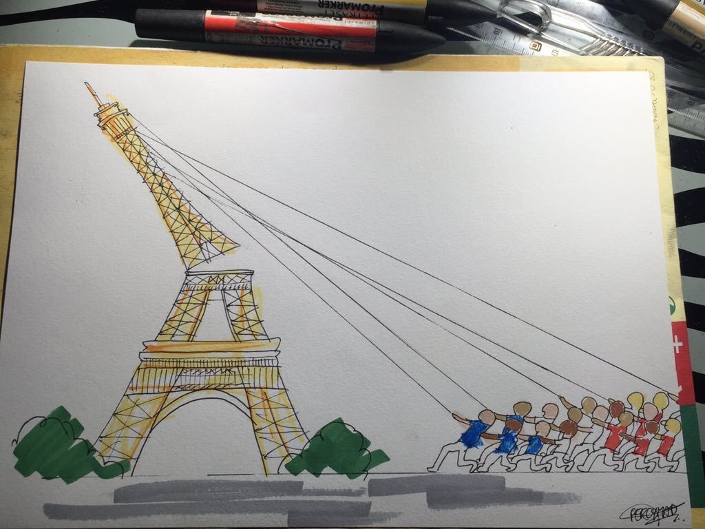 Alejandro R. nous envoie ce dessin. «Je suis professeur aux Beaux Arts. J’illustre ma tristesse.» #fusillade #Paris pic.twitter.com/f3fOI2RixT