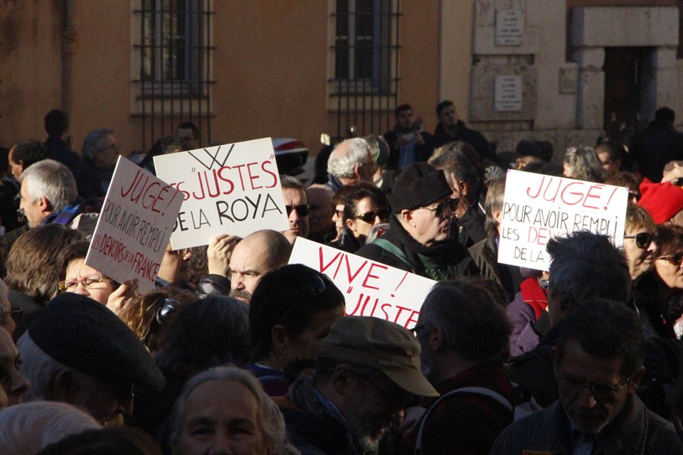 Initialement prévue à 13h30, sa comparution a débuté aux alentours de 15h30. Malgré ce retard, les soutiens ne se sont pas découragés scandant le nom de leur héros local. Entendu pour avoir installé un camp de fortune dans un bâtiment de la SNCF et pour avoir transporté et accueilli près de 200 migrants chez lui, qu’importe le jugement « il n’arrêtera pas tant que le problème ne sera pas réglé ». Une dizaine d’habitants de la vallée de la Roya sont venues témoignées pour la défense de l’agriculteur.