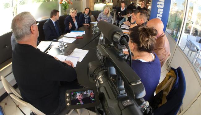 Jeudi 16 mars 2017, 10h30 du matin, dans un petit restaurant de Six-Fours-les-Plages. Nous sommes à 38 jours du premier tour de l’élection présidentielle. Autour d’une table, cinq lecteurs de Var-Matin sont là pour poser leurs questions à Marine Le Pen en toute liberté, ou presque. En amont de la rencontre, les questions devaient être envoyées par mail, « il faut éviter les sujets qui fâchent, comme sa mise en examen ». La première question posée par un lecteur concerne sans surprise l’immigration et l’insécurité. Et les réponses sont sans surprises non plus : ré-armer les forces de police, maîtriser nos frontières, engager des policiers, des douaniers…