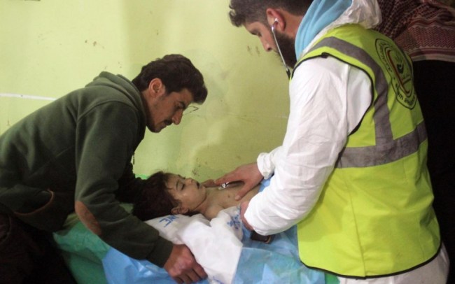 Malgré les effets dévastateurs, l’attaque ne faiblit pas. Quelques heures plus tard, un nouveau bombardement a cette fois frappé un hospice où une partie des victimes étaient prises en charge, le principal hôpital de la région avait été, lui, en partie détruit deux jours avant par des bombardements. De nombreuses photos et vidéos postées sur les réseaux sociaux par des activistes et des habitants montrent des victimes inconscientes ou en train de suffoquer et d’asphyxier alors que les secouristes tentent de leur venir en aide. Certaines sont en proie à des convulsions. Les corps d’au moins dix enfants sont alignés, protégés par un drap. Il n’y a que les détails physiques qui rendent compte de la cruauté d’une attaque au gaz neurotoxique. Le gaz, sans doute du sarin, qui peut être tiré avec des obus ou un missile, s’infiltre dans les maisons. Le but est de surprendre les gens dans leur sommeil, pour en tuer le plus grand nombre, avant même qu’ils n’aient le temps de se protéger. La suffocation, la pire des morts. Les images montrent des enfants bave aux lèvres, tentant désespérément d’attraper une bouffée d’air, avant de succomber.