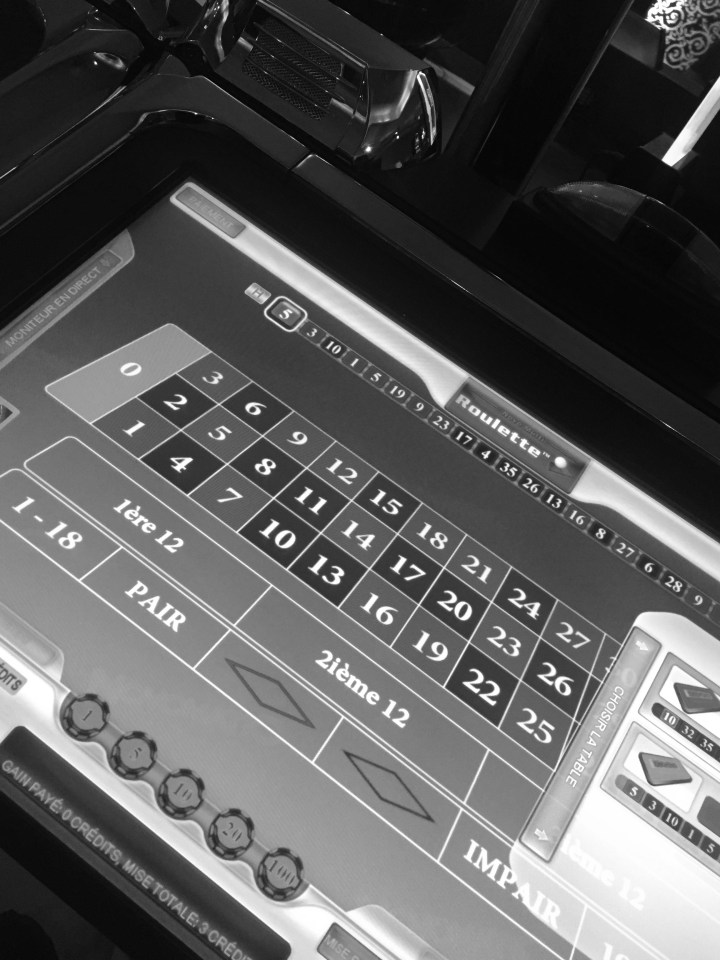 Sur la Croisette, le Palais des Festivals abrite le Casino Barrière. Nous y faisons une petite escale avant de rejoindre le Majestic. A l’entrée, les vigiles sont méfiants. Une employée contrôle notre identité. Elle arbore une coiffure atypique. Son crâne est rasé en forme de W. Elle nous propose un tirage au sort pour gagner une voiture, c’est gratuit, pourquoi pas. Avant de pénétrer ce royaume du risque, le chemin est charmant. Un aquarium longe le couloir. Des poissons de toutes espèces. Dans le casino, les joueurs sont absorbés par leurs écrans. D’autres ont l’air plus inquiets. On se prend au jeu. Et si ce soir on touchait le jackpot ? Roulette, dix euros sont misés. Nous sommes de petits joueurs, comparé, aux tables d’a côté, où les joueurs misent sans se soucier des pertes. Durée de notre partie 1min48. Amers, il nous faut un remontant. Direction le bar. Quelques échanges avec le barman, mais rien de bien intéressant au menu de la discussion. Il semble fuir les questions. La salle est silencieuse, . Puis, un « putain comme par hasard » s’échappe de la bouche d’un des joueurs. Il a tout perdu. Comme nous.