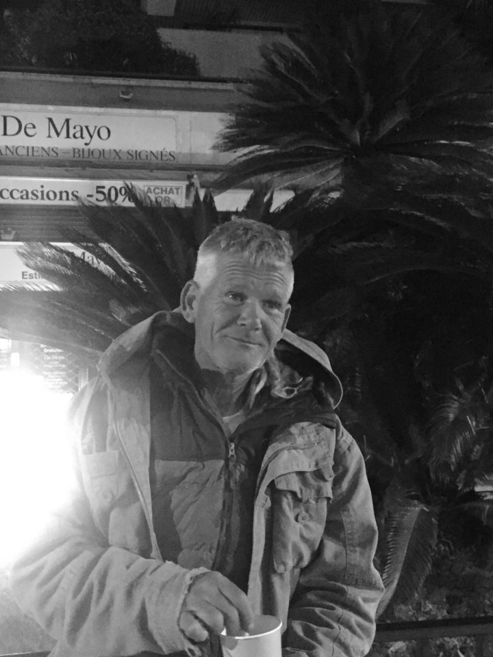 Cannes ville du contraste. Dans la rue des Serbes, on se dirige vers un SDF. Un visage rabougri, les yeux azurs. « Bonsoir, monsieur… », il nous arrête : « Sorry, I don’t speak french. ». Il a un fort accent écossais. On comprend difficilement ce qu’il raconte. Il vient d’arriver du Portugal, en stop, et ne sait toujours pas où dormir. De fil en aiguille, il nous annonce être le frère d’un chef cuisinier mondialement connu : Gordon Ramsay. Il lui ressemble comme deux gouttes d’eau. On se méfie, dit-il la vérité ? Petite recherche sur Google, et il nous raconte, ce que je lis sur l’écran de mon smartphone bientôt à court de batterie. Un procès pour trafic de drogue en Indonésie. Aujourd’hui il vit avec Stubby, un gros chien aux yeux bleus. Un camion du SAMU Social passe devant nous. « Hey ! Sorry, can I have some coffee please ? », demande Ronnie. On lui sert un café et un triste potage. De quoi le réchauffer, en cette nuit glaciale… Malgré sa situation, il a de grandes ambitions. Il veut créer une « green community » qui vivrait en autarcie. Cultiver ses propres fruits et légumes, vivre d’amour et d’eau fraîche, de haschich et de sexe. S’ensuit une longue discussion sur la société de consommation qu’il exècre, les produits bios, et son frère, ce « coward« .