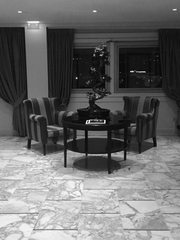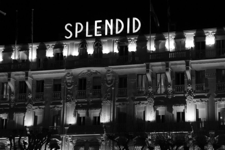 L’hôtel brille dans la nuit cannoise. A l’intérieur du Splendid, l’ambiance est morose. Lumière blafarde, moquette sombre, murs recouverts de toiles un rien désuètes. Le réceptionniste semble justifier : « Vous savez, on n’est qu’un hôtel 4 étoiles nous, ce n’est pas Cannes… Pourquoi vous n’allez pas dans un vrai palace ? Ici c’est un hôtel d’habitués. ». Des clients, sexagénaires, arrivent. Les formules de politesse toutes faites résonnent dans ce tout petit hall. « Comment tu vas René ? Bonsoir Madame Goubert, vous avez passé une bonne soirée ? ». Nous n’allions pas rester très longtemps, à se regarder dans le blanc des yeux avec le réceptionniste. Lequel nous conseille de nous diriger vers le Majestic qui est plus « luxueux » et plus « djeun’s » selon lui.
