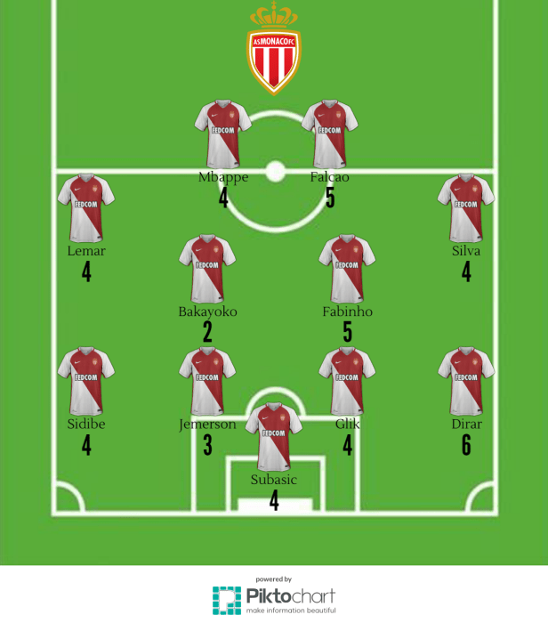 Le début de match est plutôt à l’avantage des Monégasques. Mbappé se heurtera deux fois à Gianluigi Buffon, l’emblématique gardien turinois. Quelques minutes plus tard, c’est Falcao qui, après avoir pourtant repris un énième bon centre de Nabil Dirar, verra sa tête repoussée par Buffon.