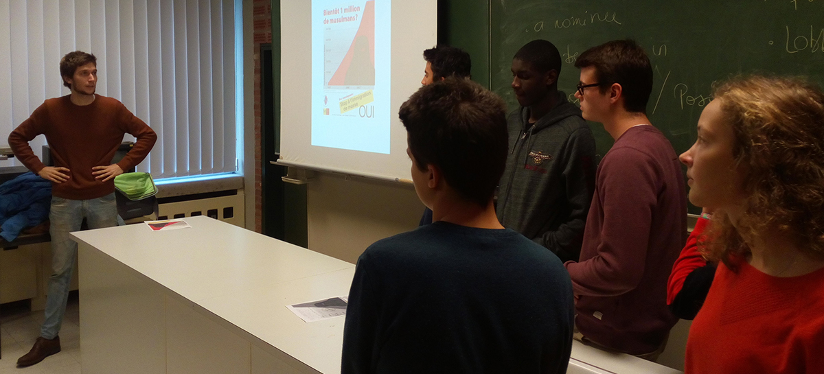 Il faut également remettre en question la tendance à « ghettoïser » du système scolaire belge. Quand j’anime dans des classes où il n’y a que des élèves blancs de classe aisée, on ne va pas avoir les mêmes discussions que dans des classes où tout le monde a quelqu’un d’immigrés dans sa famille. Il y a aussi les professeurs qu’il faut informer sur les enjeux qu’il y a derrière l’apprentissage des questions migratoires.