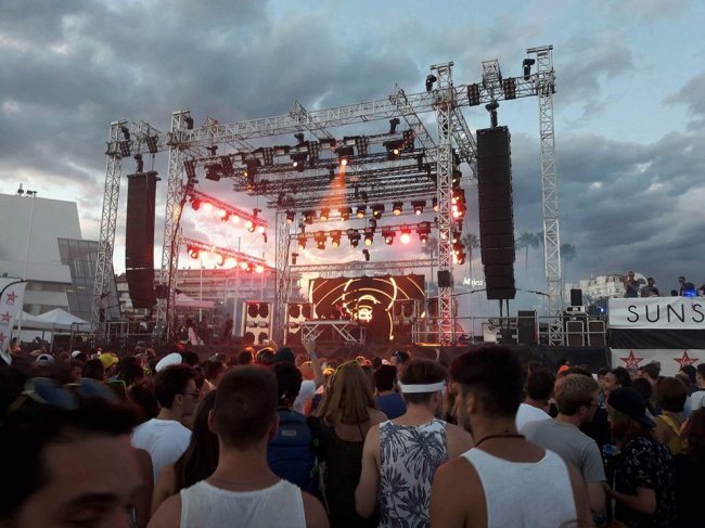 La scène Terrasse, s’est transformée en plage sous les cocotiers grâce au concept des soirées Cocobeach. C’est le crew FrenchKitchen qui est à l’origine du concept de Cocobeach. Habituellement, ils transforment le temps d’un soir Paris en plage aux airs d’Ibiza avec des décors fais a base de bouées et autres fantaisies estivales. Cette fois ci c’est à deux pas de la plage et des marches du Palais des Festivals que FrenchKitchen a posé ses platines.