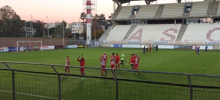 Avec une chute en Division d’Honneur Régionale (7ème division), Cannes s’enfonce dans le monde amateur sans en oublier sa gloire passée. Ainsi, dans le but de retrouver cette réputation d’antan, les Rouges et Blancs ont entamé en 2015 une « remontada » après avoir été promus en DH (6ème division). Une renaissance prolongée en juin dernier avec une nouvelle promotion, cette fois-ci en National 3, signifiant un retour du club azuréen au sein des championnats nationaux ! Le club regarde donc le monde professionnel avec envie et s’en inspire, en témoigne le passage du président – Johan Micoud (ancienne gloire du club et de l’Équipe de France) – dans le vestiaire après le match du samedi 25 novembre, qui a chaleureusement félicité les joueurs après cette victoire.