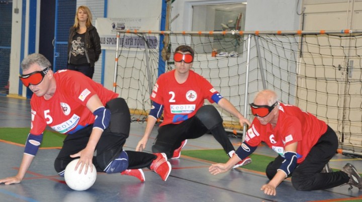 Sur chaque tir adverse, les trois équipiers s’étendent de tout leur long sur le flanc, bras et jambes tendus, afin de couvrir au maximum la surface du but. Cet étonnant ballet nécessite de la réactivité, un bon placement dans l’espace et surtout, beaucoup de complicité entre les joueurs. « Le Torball, ça crée des liens. C’est l’un des seuls sports que l’on peut pratiquer à plusieurs, parce que pour les déficients visuels, la plupart des disciplines sont individuelles », explique Bernard, 63 ans, affublé d’un casque semblable à celui porté par les gardiens de hockey. « C’est un vrai sport d’équipe, on est entre copains », renchérit Jérôme, 38 ans. Tous les deux ont commencé à perdre la vue très jeunes, à cause de la neuropathie optique de Leber, une maladie génétique héréditaire. Sur le terrain et en dehors, ils côtoient Jean-Philippe, 51 ans, Arnaud, 39 ans, ou encore Gilles, 26 ans.