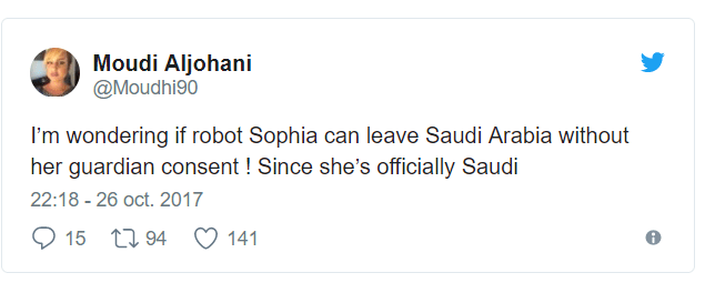 Le plus surprenant finalement, c’est que Sophia a reçu la citoyenneté récemment, dans un pays qui fait beaucoup parler de lui ces derniers temps : l’Arabie Saoudite. Alors que les droits de la femme y sont considérés comme restreints, Sophia, femme non humaine, a le droit à beaucoup de droits. Cela a donc créé une forte polémique. Dans ce pays où les femmes n’ont le droit de conduire que depuis 2 mois maintenant, où les employés n’ont le droit de se loger qu’avec l’accord de leurs employeurs, on a offert la citoyenneté pour la première fois à une robot. Cette décision pour le moins surprenante n’est pas sans porter son lot de questions. Par exemple, si quelqu’un porte atteinte à Sophia, la personne sera-t-elle poursuivie comme si elle avait porté atteinte à un être humain ? Même si Sophia n’est pas humaine, elle a aujourd’hui la même place dans la société que vous et moi. Alors, devons-nous craindre cette arrivée des robots dans notre univers, ou partons-nous vers un remake bien moins divertissant que Terminator ? Ou alors, est-ce un simple coup de com’ de la part des dirigeants de l’Arabie Saoudite ? Pour faire en sorte que leur pays soit le pionner de l’acceptation d’une telle intelligence artificielle et pour montrer également que ce pays se réorganise de manière importante ? La féministe saoudienne Moudi Aljohani ironise sur le fait de savoir si Sophia peut quitter le pays sans l’accord de son « gardien », et si elle est obligée de porter le voile intégral. Une polémique qui gêne les femmes en Arabie Saoudite, mais plus globalement dans le monde entier.