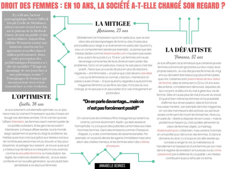 Il y a dix ans, l’acteur Rocco Siffredi forçait Cécile de Ménibus à mimer un acte sexuel avec lui, sur le plateau de la méthode Cauet, devant un public et des invités hilares. Aujourd’hui, l’affaire Weinstein a brisé une immense omerta sur les agressions sexuelles dans le milieu professionnel. Alors, notre perception des problématiques féministes a-t-elle été modifiée ? Réagit-on davantage de nos jours face à une polémique sexiste ? Buzzles a recueilli des témoignages de femmes sur le sujet.