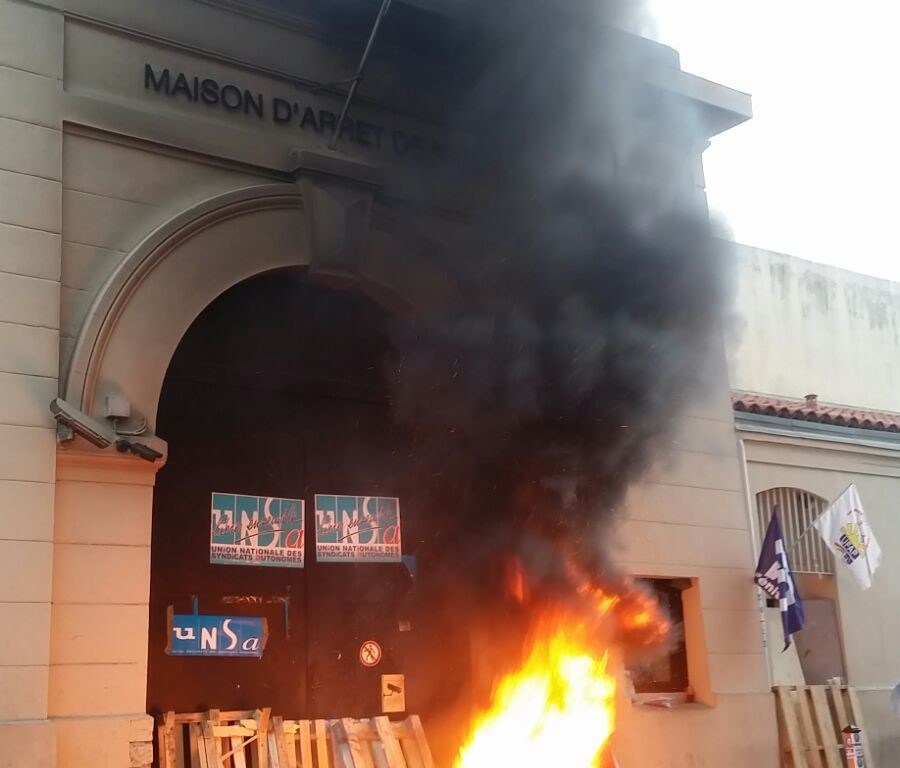 Devant la maison d’arrêt de Nice, un feu noircit le drapeau tricolore. Les syndicats manifestants ont bloqué la police et toutes les extractions depuis le matin. Au tribunal, Maître Rimondi pense que « dans le meilleur des cas, le procès reprendra jeudi après-midi ». Nordine Souab, le chef syndicaliste de « l’UFAP UNSA justice » (le syndicat majoritaire au sein de l’administration pénitentiaire) annonce que son organisation « a levé le blocage à 12h30 ». La FO cesse aussi ses manifestations pour aujourd’hui. Des négociations sont en cours pour s’assurer de la sortie de la « veuve noire ».