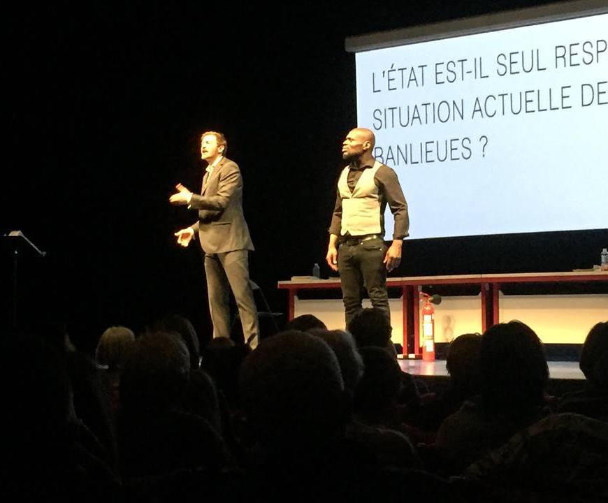 La personnalité des deux protagonistes nous est donnée à vif. Yann n’a jamais manqué de rien et se veut défenseur des droits humains en prenant l’État pour responsable d’une stigmatisation sociale, voire raciale. Souleymann, lui, s’est battu pour en arriver là où il est, et fait partie des rares jeunes des banlieues à intégrer l’École du Barreau de Paris. « Et de manière plus frappante encore, le seul Noir » comme le dénonce Yann. Les deux étudiants vont démanteler les propos de l’autre à coups de piques virulentes. Ils vont s’attaquer à l’identité de leur adversaire, dévoilant toujours et toujours plus le vécu des deux individus et plus particulièrement celui de Souleymann. Ce dernier a grandi entre la délinquance et les coups de feu comme seul échappatoire pour beaucoup de ses semblables. A coups de piques rudes et exacerbés, les acteurs incarnent la rage de deux étudiants issus de deux France différentes. Chaque stigmatisation est passé au crible par les deux apprentis-avocats. Elles semblent tomber une à une. Les idées et opinions nous foudroient. La réponse au débat n’est certes pas clarifiée, mais celle-ci brise les préjugés et idées reçues qu’on se fait de l’autre. Finalement, l’animalité se transforme en humanisme et une fois les arguments posés sur la table, la cohésion pouvant réparer la fracture sociale qui divise la France, semble renaître. C’est là où Kery James semble vouloir en venir : l’Hexagone est fracturé en deux, mais les individus ne sont pas solidaires entre eux dans chacune des deux parties. « La jalousie et l’égoïsme ne sont pas propres aux habitants des banlieues. Il y a aussi dans les quartiers aisés des gens qui ne supportent pas la réussite de l’autre« .