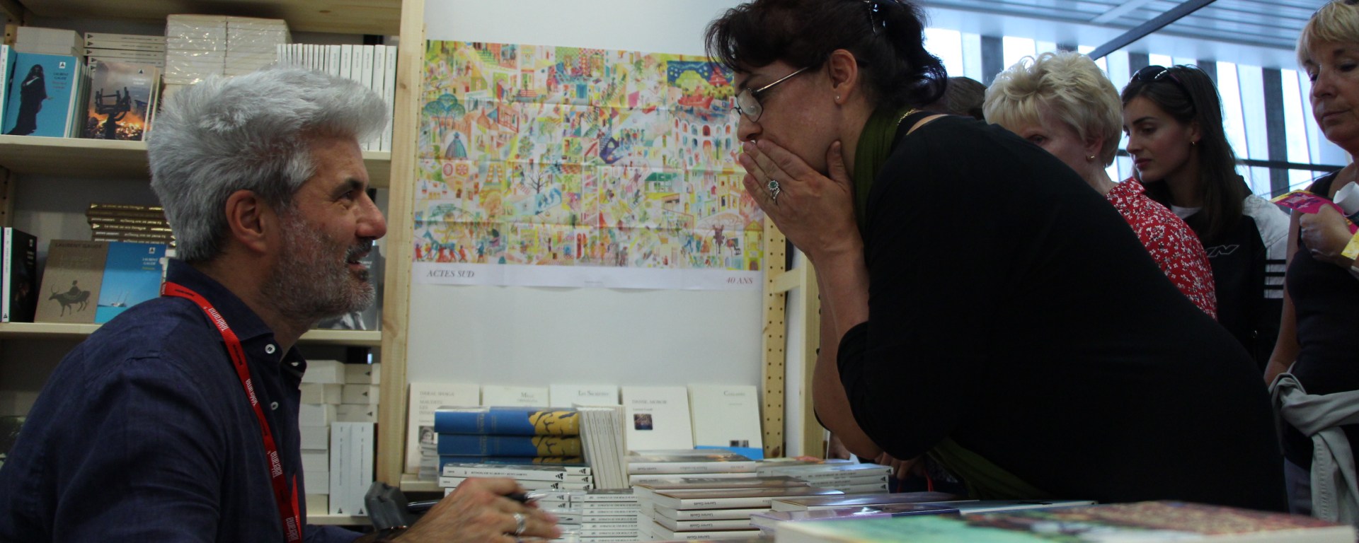Une analyse plus fine de l’œuvre de l’auteur a lieu avec quelques festivaliers. “Ce que j’aime beaucoup, c’est l’aspect cinématographique de votre écriture, confie un jeune homme. Vos livres pourraient être adaptés très facilement au cinéma.” La discussion littéraire continuera quelques minutes. Une complicité s’installe et des rires s’échangent. Pour la “star” de cette séance de dédicace, c’est un moment très important. “Ces instants-là, c’est la seule possibilité que j’ai pour avoir un retour sur mon travail. Les peintres, par exemple, ont la chance d’avoir des retours immédiats lors des vernissages. Ce n’est pas mon cas, explique Laurent Gaudé. Il ya souvent des échanges assez marrants. En plus, les gens présents ici n’achètent pas seulement mon dernier livre, mais aussi les anciens. C’est un très beau cadeau qu’ils me font.”