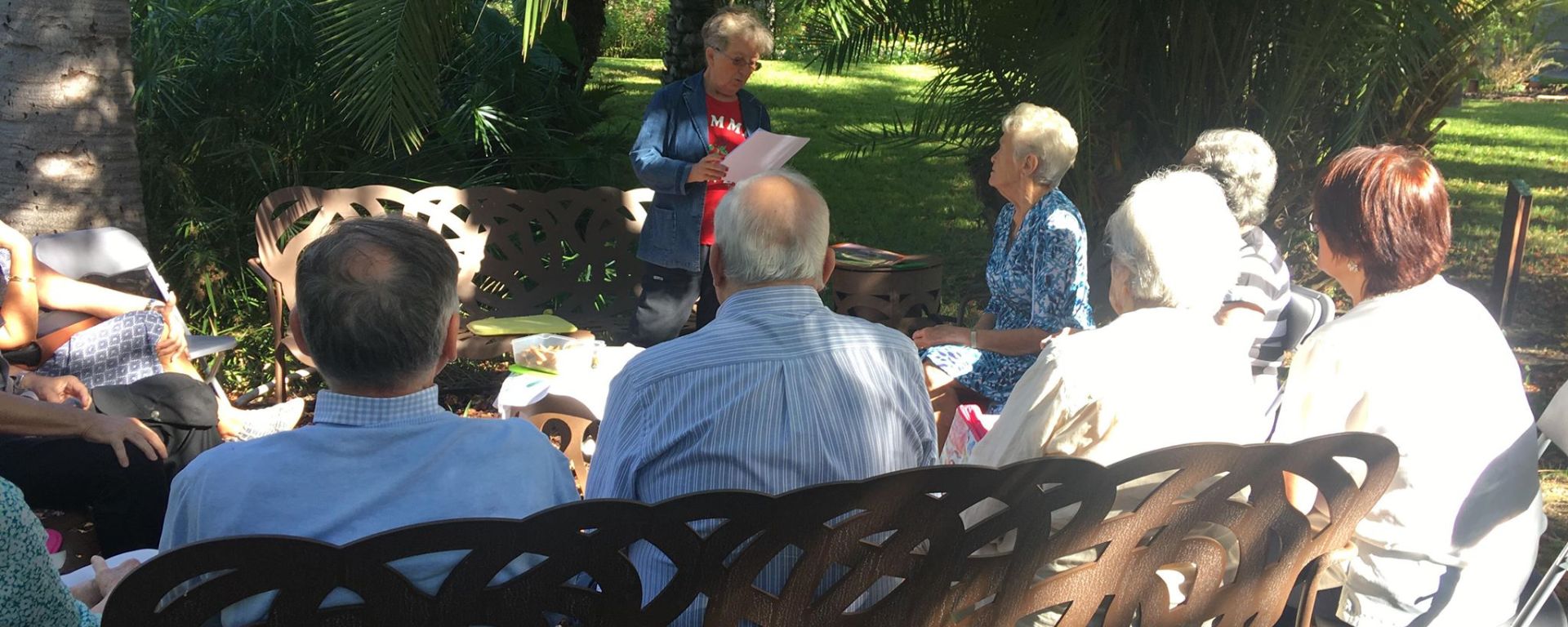 En 2012, l’association veut voir plus grand et lance un nouveau projet. Un jardin pour les personnes atteintes d’Alzheimer, composé de plantes aromatiques, de fleurs odorantes colorées et de divers types d’arbres, qui sont propice à une relaxation naturelle et à la mobilisation de tous les sens pour les personnes atteintes de cette maladie neurodégénérative. Depuis son ouverture, le jardin Anne Girardot accueille familles et malades, une à deux fois par mois dans ateliers sensoriels, permettant aux malades d’établissements d’hébergement pour personnes âgées dépendantes ou de maisons de retraites venant de la Côte d’Azur. « Grâce à ces ateliers, on essaye de faire revenir des souvenirs aux personnes atteintes de maladies neurodégénératives, comme Alzheimer, et il y en a beaucoup d’autres », explique Christine Thivillier, retraitée bénévole, secrétaire de l’association et en charge de ces ateliers mensuels. Au cours du dernier rassemblement, c’est la figue qui était à l’honneur. Dégustation, chant, poésie, les cinq sens sont sollicités au cours de ce temps partagé ensemble. Les malades ont pu découvrir des biscuits à la figue, et chanter tous en cœur un petit air de Jean Ferrat, à l’ombre bleue des figuiers.