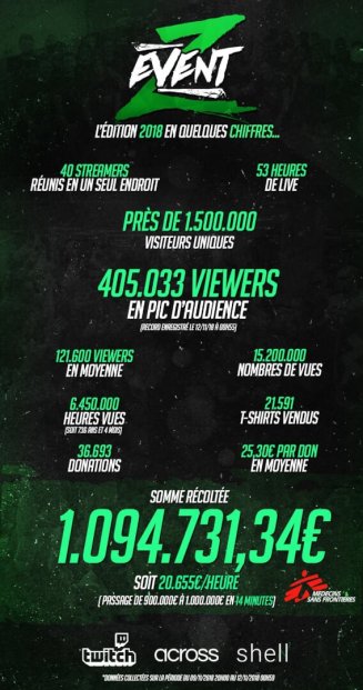 Créé il y a deux ans par Adrien « ZeratoR » Nougaret, un des streamers français les plus connus, et Alexandre Dachary alias « Dach », son associé, le Z Event (autrefois nommé Projet Avengers) avait permis de récolter 170.000 euros pour l’ONG Save the Children. En 2017, ce sont plus de 450 000 euros qui avaient été remis à la Croix-Rouge française après 60h de marathon du jeu vidéo. Le chef de l’Etat Emmanuel Macron avait même réagi sur son compte Twitter. La somme a encore plus que doublé cette année pour dépasser la barre du million.