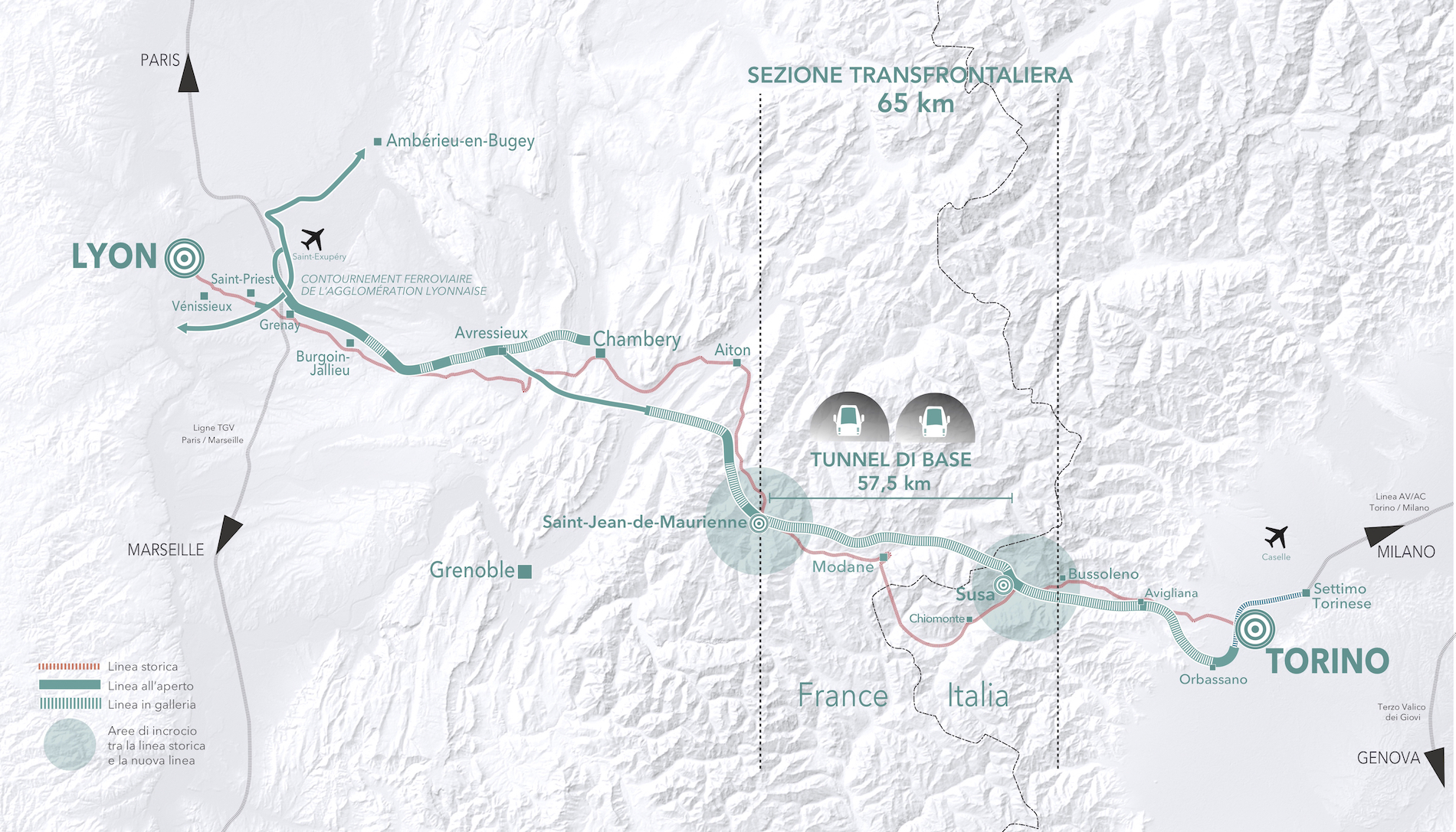 Le but initial du TAV est de relier plus rapidement Paris à Milan, pour les hommes, comme pour les marchandises. Grâce à la construction du tunnel, on pourrait théoriquement relier Lyon et Turin en 2H. Le moyen le plus rapide étant aujourd’hui la voiture, en 3h et 40 minutes. Mais l’accident du tunnel du Mont-Blanc en 1999, et le scepticisme des politiques a conduit à réorienter le projet principalement vers le fret ferroviaire (transport de marchandises).