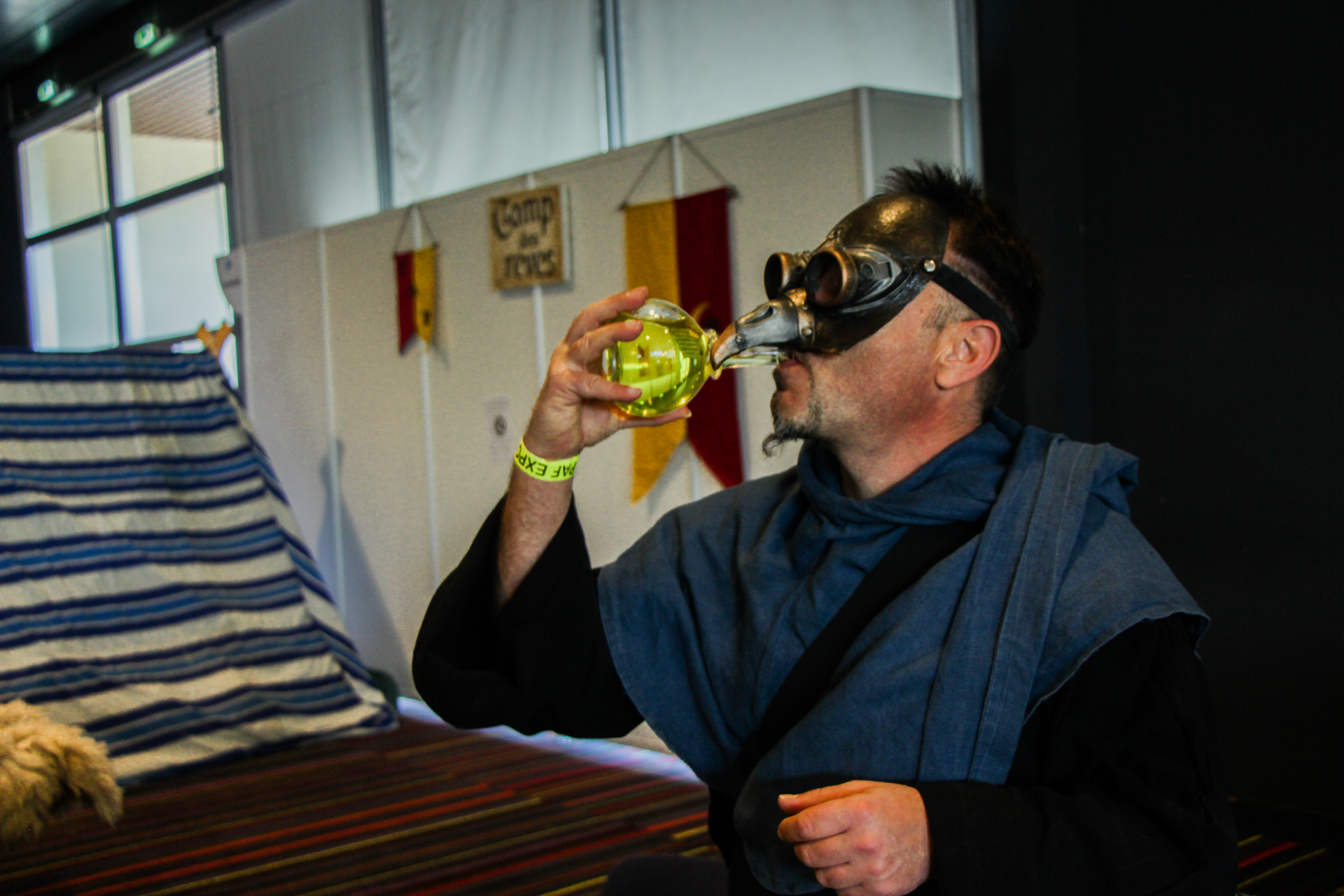 Une fois les portes du deuxième étage passées, les visiteurs remontent le temps. Entraînements au tir à l’arc, combats à l’épée et armureries nous plongent au cœur de l’ère médiévale. Quelques médecins, avec humour et passion, expliquent même les procédures de soins prodigués au moyen-âge. Et si les techniques médicales anciennes peuvent laisser perplexes, les pierres de protection peuvent constituer une solution alternative !