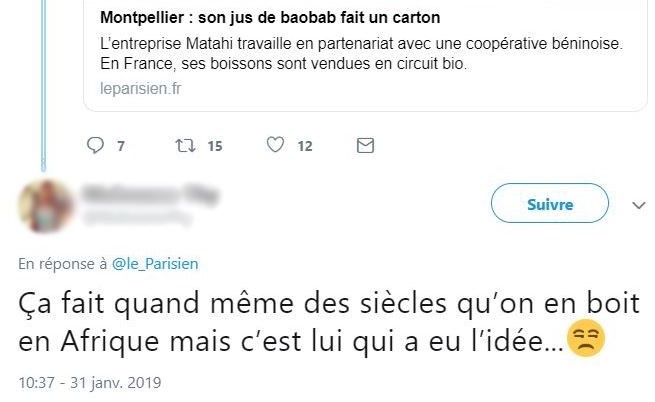 Matahi est une boisson au jus de fruits de baobab. Elle remporte en 2018, le Prix spécial dans la catégorie « Développement durable alimentaire » lors de la 5e édition du concours Snacking d’Or by France Snacking. 100 % bio et fabriquée en France, la boisson, dont les fruits sont issus du Bénin, remporte un franc succès. Face à cette popularité, le journal Le Parisien publie le 29 janvier 2019, l’histoire de Raphaël Girardin et son idée de commercialiser le jus de baobab. Intitulé « Son jus de baobab fait un carton », l’article provoque une mini polémique. Les internautes dénoncent une « appropriation gastronomique » voire « culturelle ». Il faut dire que le jus de baobab existe en réalité depuis quelques siècles en Afrique ; retour sur les origines du produit.