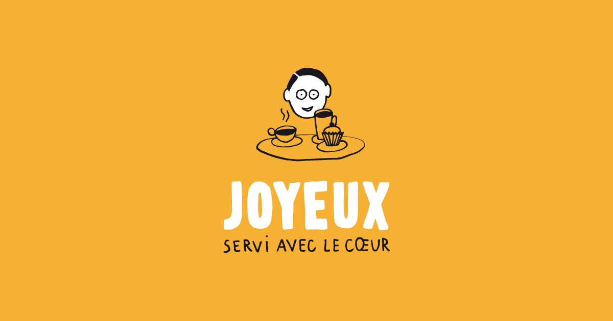 Une devanture noire. L’enseigne détonne. Jaunes et lumineuses, le tracé des lettres est incertain, comme écrit par un enfant. À l’effigie du concept, la façade est insolite. « Joyeux, servi avec le cœur » : le slogan, caractéristique, se remarque, il questionne. Il invite à entrer.