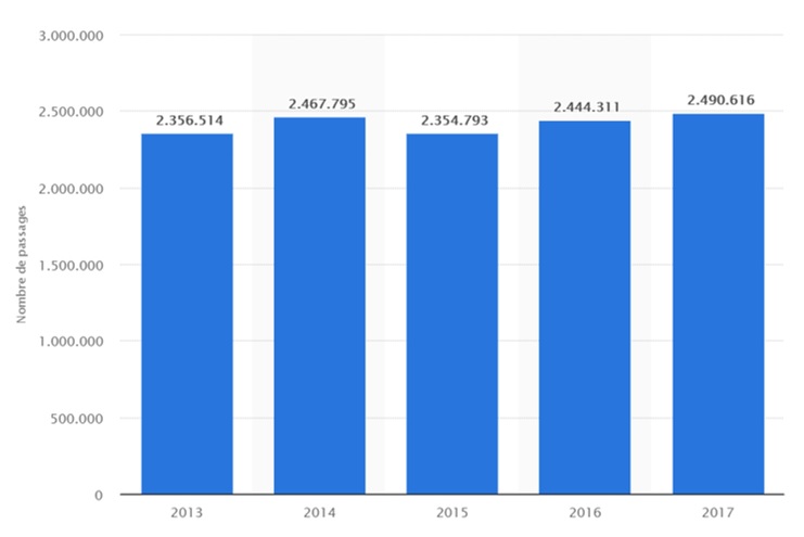 Nombre de passages aux urgences pédiatriques en France de 2013 à 2017 – Source : Statista.fr