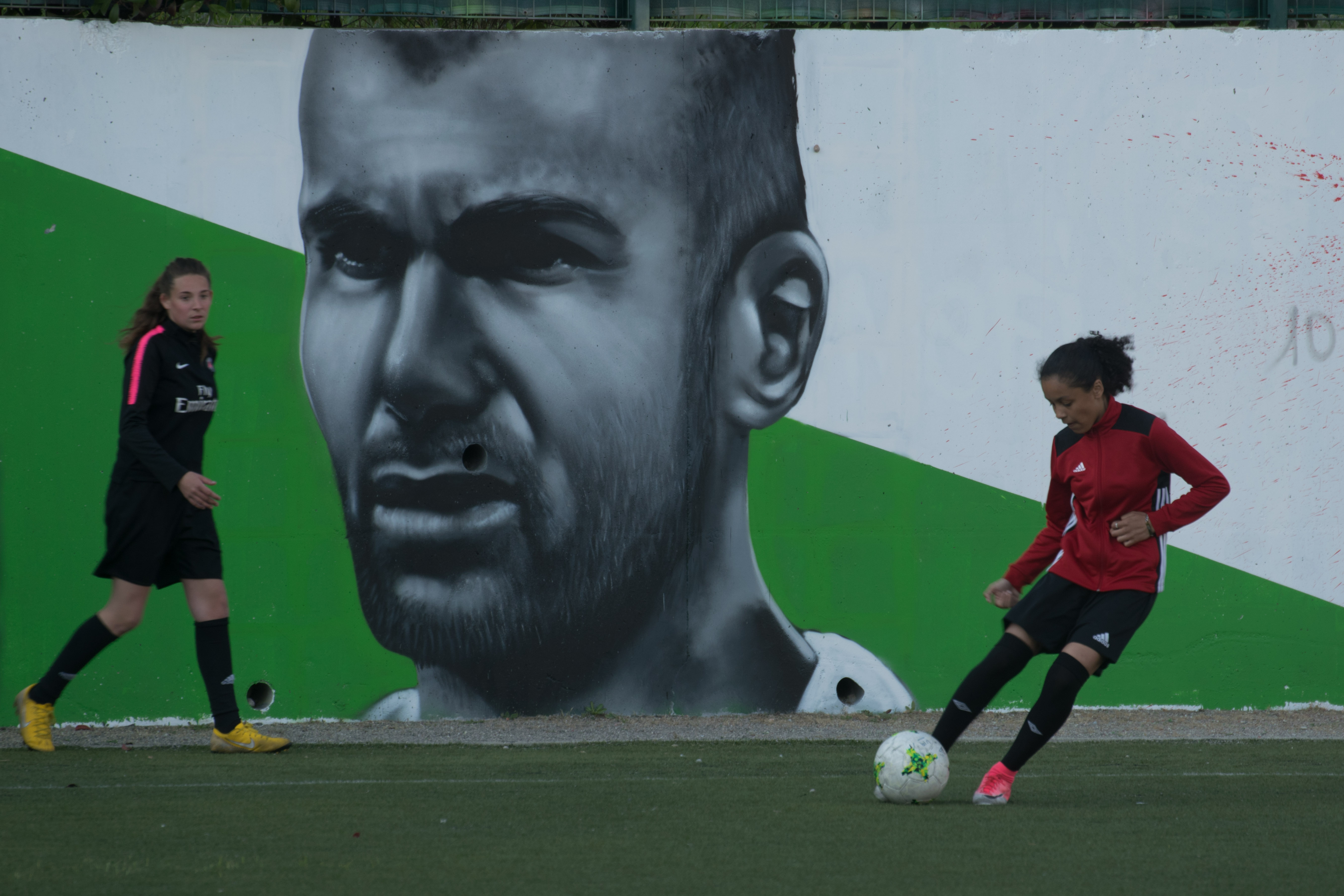 Jessica, 18 ans, joue dans l’équipe fanion et encadre bénévolement l’entraînement des filles U15. Elle a remarqué de nets changements au sein du club et plus globalement dans la région. « Quand j’ai commencé il y a 5 ans, il n’y avait que du foot en salle pour ma catégorie d’âge, aujourd’hui il y a beaucoup plus d’équipes ». Ainsi la jeune Naomi, 15 ans peut rêver de faire du football son métier comme son grand frère Christophe Hérelle, dont le visage s’affiche en grand sur un mur de l’enceinte du terrain d’entraînement. Aujourd’hui titulaire en Ligue 1 à l’OGC Nice, il grandi dans le quartier des Moulins et est passé par l’AS. Sa sœur aimerait suivre ses traces et aller en centre de formation, cependant il n’existe ni centre ni pôle espoir féminin dans la région. Alors que la Côte d’Azur compte de nombreux clubs professionnels, parmi lesquels l’OGCN ou l’AS Monaco, aucun n’a d’équipe féminine dans les premiers échelons nationaux, et aucune joueuse n’est professionnelle.
