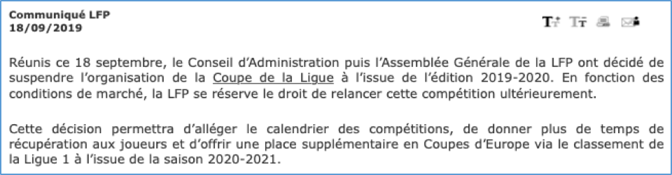 La Ligue de Football Professionnel (LFP) a annoncé mercredi après-midi que la Coupe de la Ligue s’arrêterait après l’édition 2019-2020. Une compétition qui n’a pas toujours fait l’unanimité