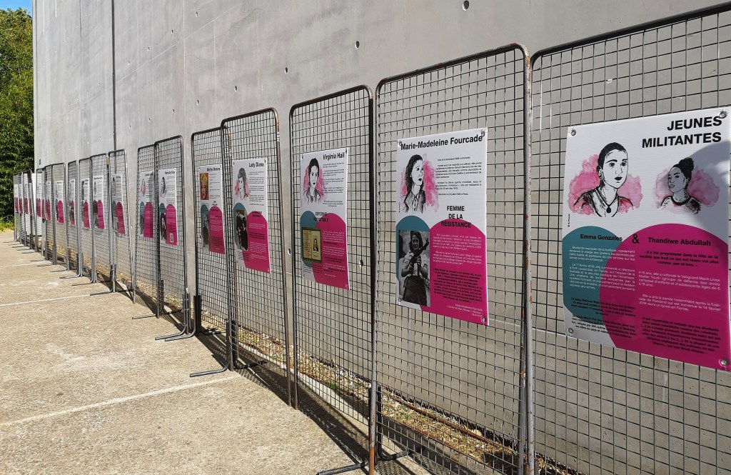 « Afin que l’oubli cesse et que le regard change sur les femmes ». Par ces mots les élèves de 3e du collège de La Chênaie, expliquent leur ambition pour cette exposition. Ils ont écrit des textes sur ces vingt-cinq personnages féminins mythiques. Sara Phenix, en service civique au centre culturel des Cèdres a dessiné et peint les visages des panneaux. Le festival a réalisé son livre annuel sur cette exposition. Dès aujourd’hui ce livre-expo sera disponible à la vente. Les fonds récoltés serviront au foyer du collège de la Chênaie.