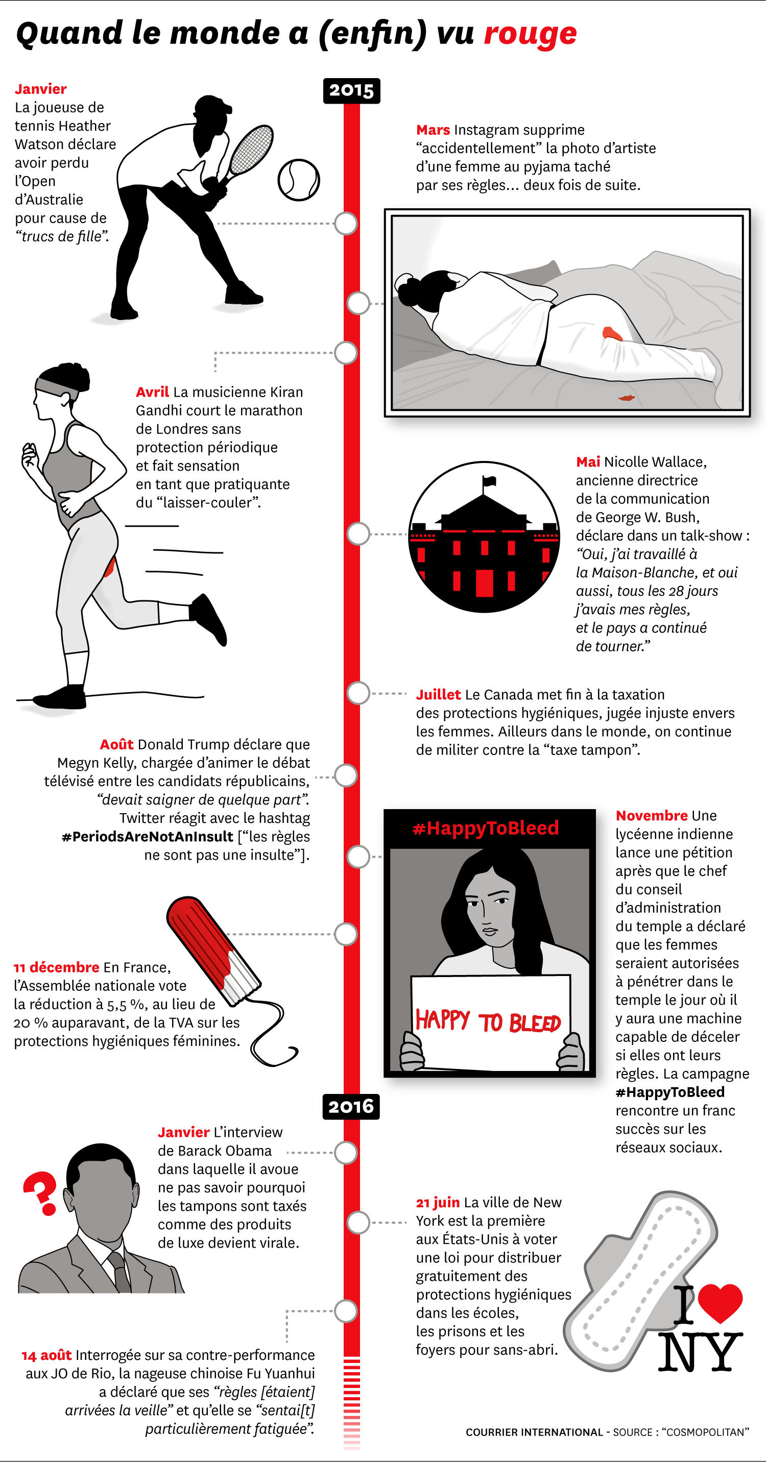 Mais les femmes ont beau cacher au fond de leur poche le plus petit des tampons, le secret est connu de tous : elles ont leur règles. D’après l’Institut national d’études démographiques, “les femme ont leurs règles pendant une quarantaine d’année”. Elles voient donc ce sang couler de leur corps près de 500 fois dans leur vie. Alors que le phénomène biologique est connus de tous, qui n’a jamais entendu : “Oh la honte” ou des rires étouffés à la vue d’une tache de sang ou d’une protection s’échappant d’un sac.