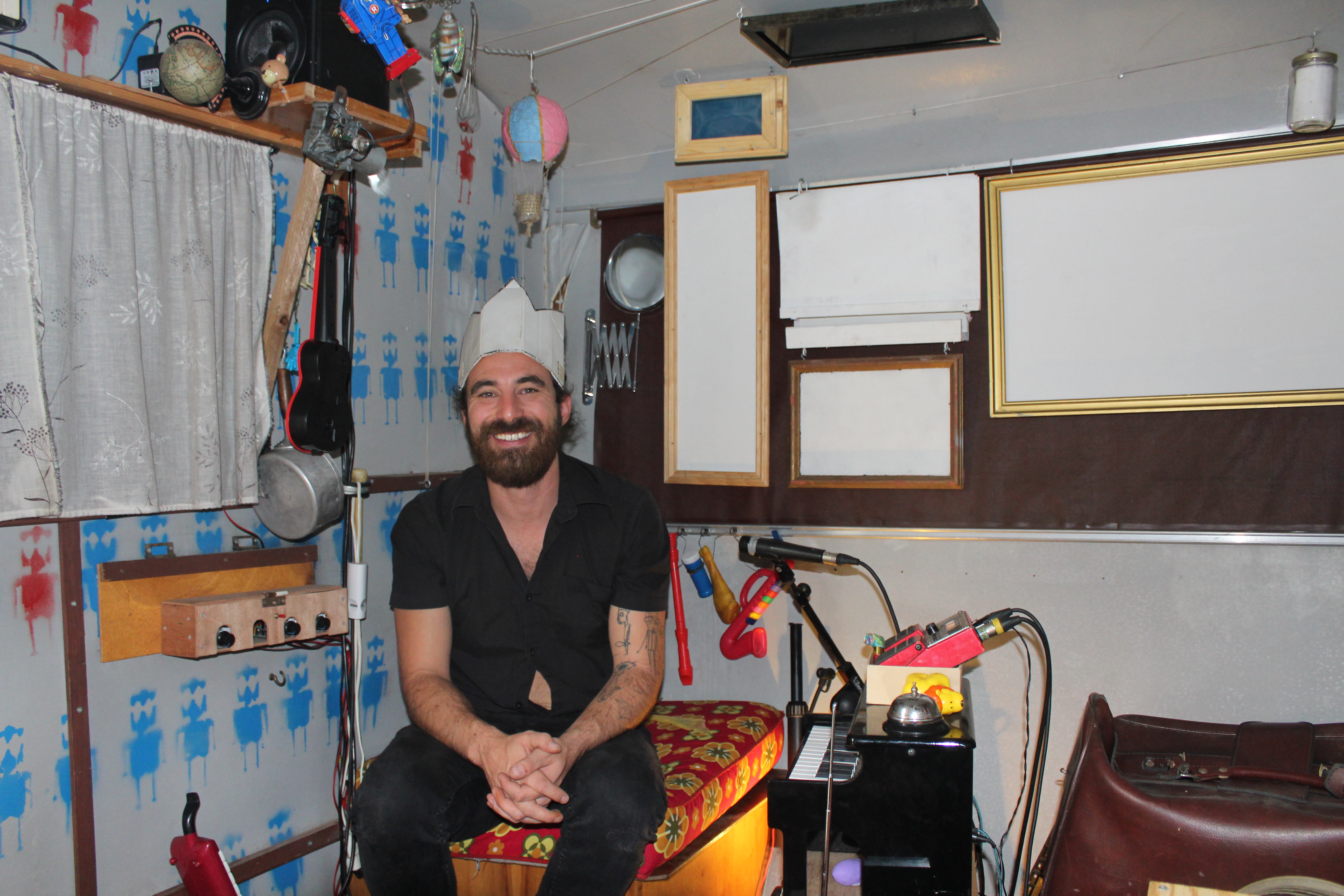 Arthur vient de Bourgogne pour offrir aux enfants et aux parents, une expérience inédite : un ciné-concert ! “Ce n’est pas qu’un spectacle pour enfant mais bien pour tout public”. Pendant 20 minutes, “le spectateur se perd dans une caravane de 10m2”. Le musicien projette ses dessins et les accompagne d’une musique qu’il interprète en direct. Des sons de jouets, d’objets du quotidien et d’instruments qu’il associe avec un looper, table de mixage et pédale permettant d’enregistrer des sons et de les jouer en boucle. “Le scénario est simple mais il est difficile à voir”, le spectateur est distrait par toutes sortes d’animations : projections d’avion en papier au mur, quelques bulles que Lucie et Antoine tentent d’attraper… La musique s’arrête. Applaudissements.