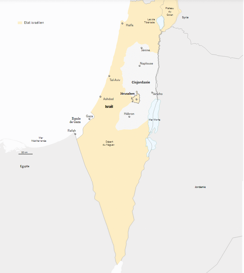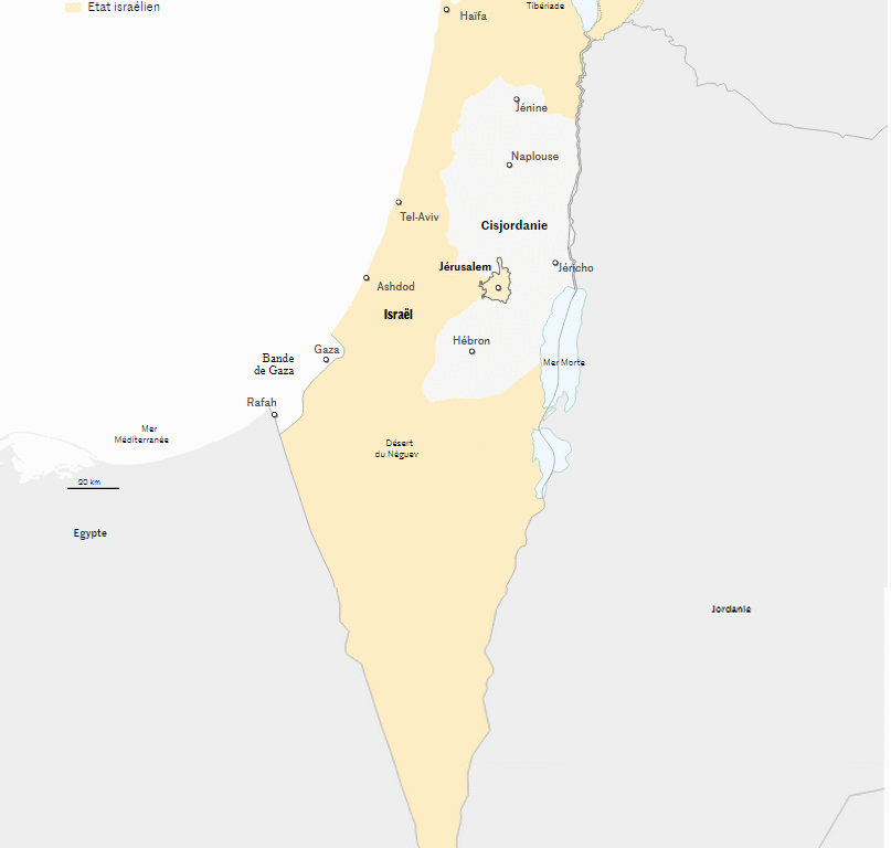Selon le plan de Trump, la Palestine bénéficierait enfin d’un Etat reconnu, mais morcelé : les colonies israéliennes installées depuis 1967 seraient officiellement annexées. Trump offrirait même à Israël la vallée du Jourdain, à la frontière avec la Jordanie. Cela ferait de la Palestine un Etat complètement enclavé, au cœur d’Israël. En compensation, la Palestine recevrait deux territoires dans le désert du Néguev, au sud de Gaza. Le tout relié par une route, volontairement éloignée de la frontière égyptienne.