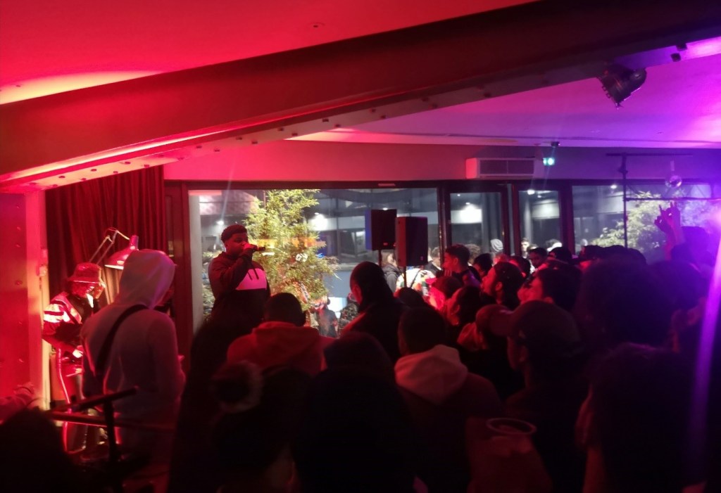 Le calme ordinaire du Musée d’Art Moderne et d’Art Contemporain de Nice semble avoir disparu le temps de cette soirée. Le samedi 11 janvier, le bar-restaurant C’Factory a accueillé, en intérieur, les concerts de la troisième édition des soirées Jump Around. Elle était consacrée à la culture urbaine. Cette soirée était en collaboration avec le média musical Kult, focalisé sur le hip-hop underground et l’organisation d’événements. « C’est notre deuxième partenariat, il n’est pas exclu qu’on le renouvelle » explique Christophe, le responsable du bar. Des rappeurs niçois étaient présents comme Bosko. L’artiste parisien Moyà mais aussi Captaine Roshi la « tête d’affiche » selon les fondateurs de Kult, était aussi convié à partir de 23h.