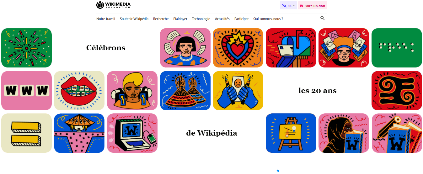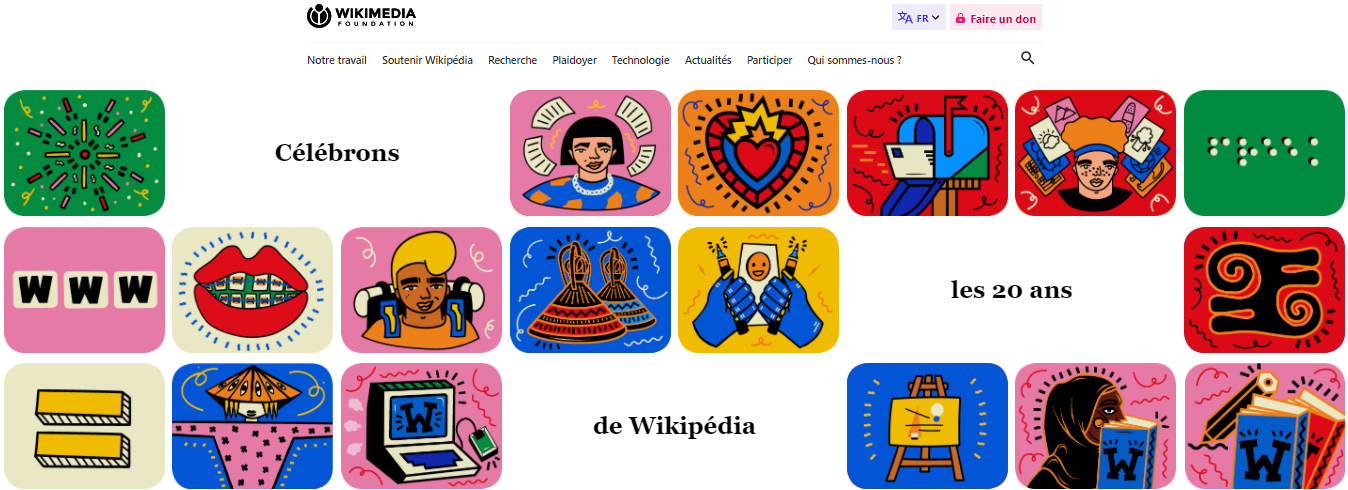 Capture d’écran du site Wikimedia Foundation à l’occasion des 20 ans de Wikipédia