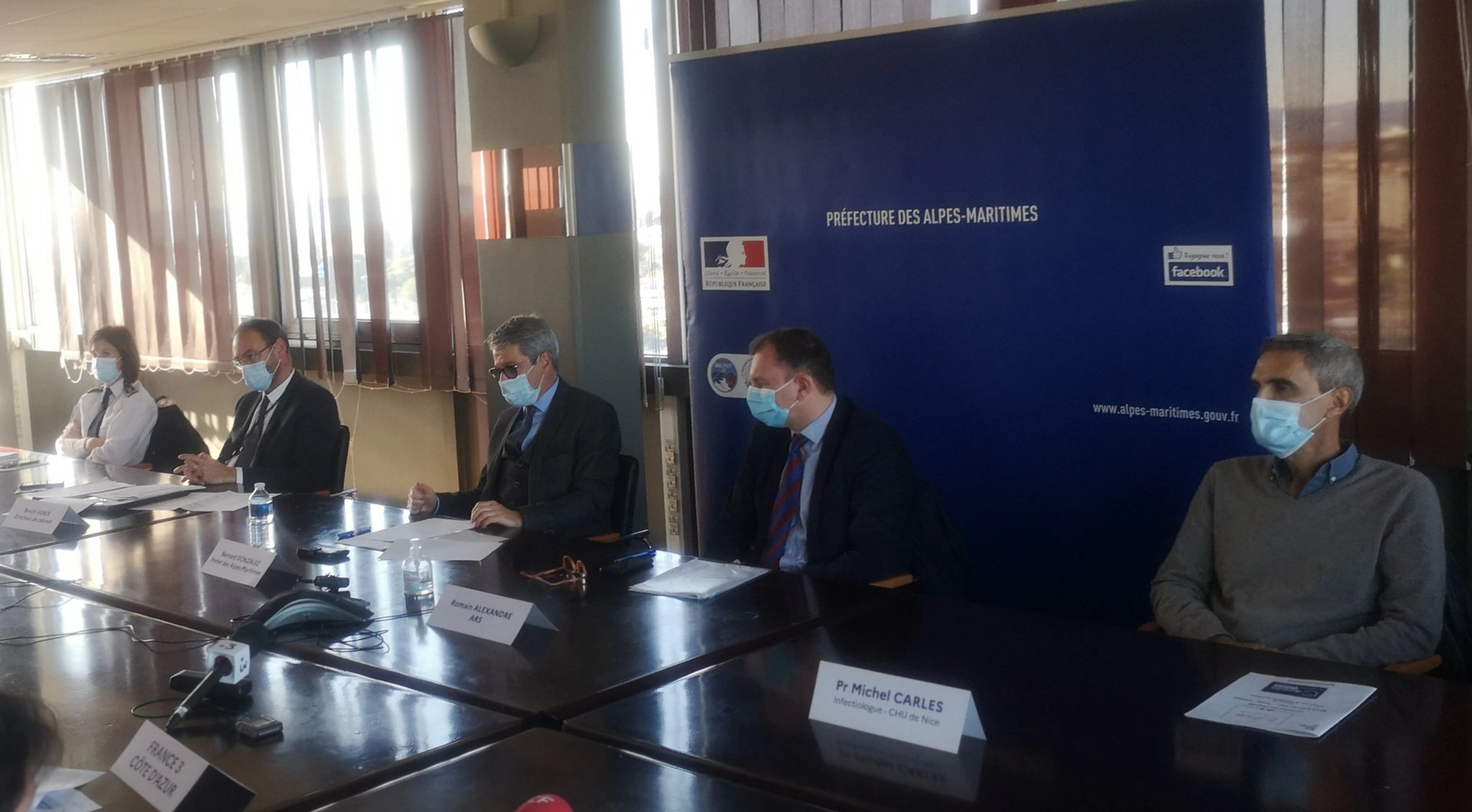 A partir de 10 heures et demi, le préfet des Alpes-Maritimes y a établit avec Romain Alexandre, directeur départementale de l’ARS (Agence régionale de santé), un bilan sur la crise sanitaire dans le département.