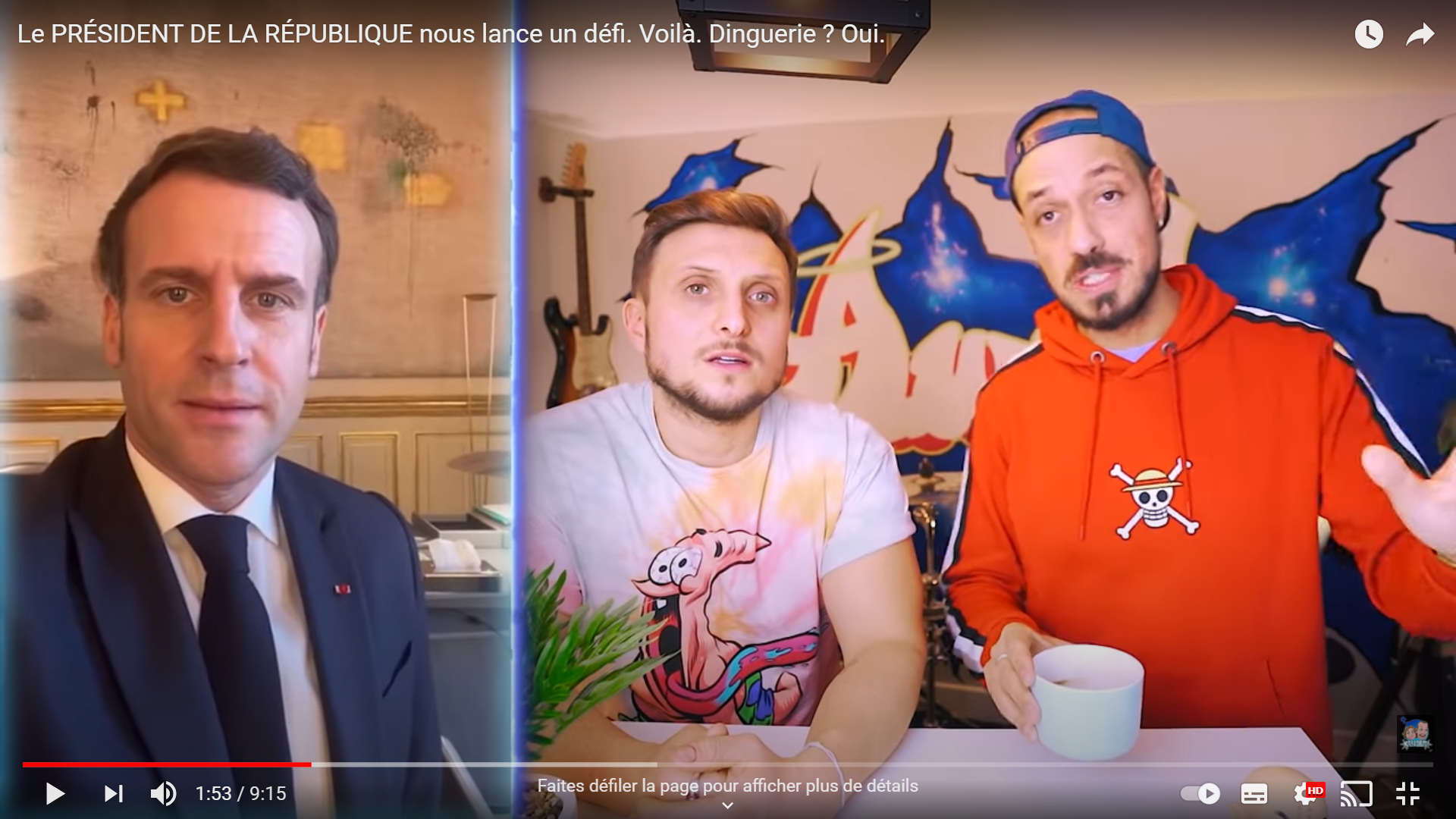 Emmanuel Macron s’est invité sur la chaine de Mcfly et Carlito. Une vidéo « concours d’anecdotes » devrait sortir d’ici quelques jours, voire quelques semaines sur YouTube. Le 4 février 2021, le président de la République a lancé un défi aux youtubeurs David Coscas et Raphaël Carlier, plus communément appelés Mcfly et Carlito. Ce jour-là, le téléphone des deux acolytes sonne et un numéro inconnu s’affiche. Il s’agit de Joé Naturel, le responsable de la communication digitale de l’Élysée. Dans une vidéo postée le 19 février 2021, on entend Raphaël Carlier demander « Est-ce que c’est un canular Joé ? ». Pour leur prouver la véracité de ses propos, Joé Naturel leur montre le palais de l’Élysée en vidéoconférence et leur envoie une vidéo. Dans cette dernière, on voit apparaitre Emmanuel Macron, filmé au téléphone en face caméra. Il propose aux youtubeurs de faire une vidéo pour rappeler les gestes barrières. « Si vous atteignez 10 millions de vue, je prends un engagement, vous venez tourner à l’Élysée », promet Emmanuel Macron dans cette vidéo. Mcfly et Carlito sont d’accord pour relever le défi s’ils peuvent faire un « concours d’anecdotes » avec le chef de l’État. Le 5 février 2021, ils obtiennent le feu vert de Joe Naturel. Le 21 février 2021, leur clip, rappelant les gestes barrières « Je me souviens » est en ligne et il dépasse les 10 millions de vue en seulement deux jours. Le défi est relevé et ils vont pouvoir enregistrer une vidéo avec le président de la République.