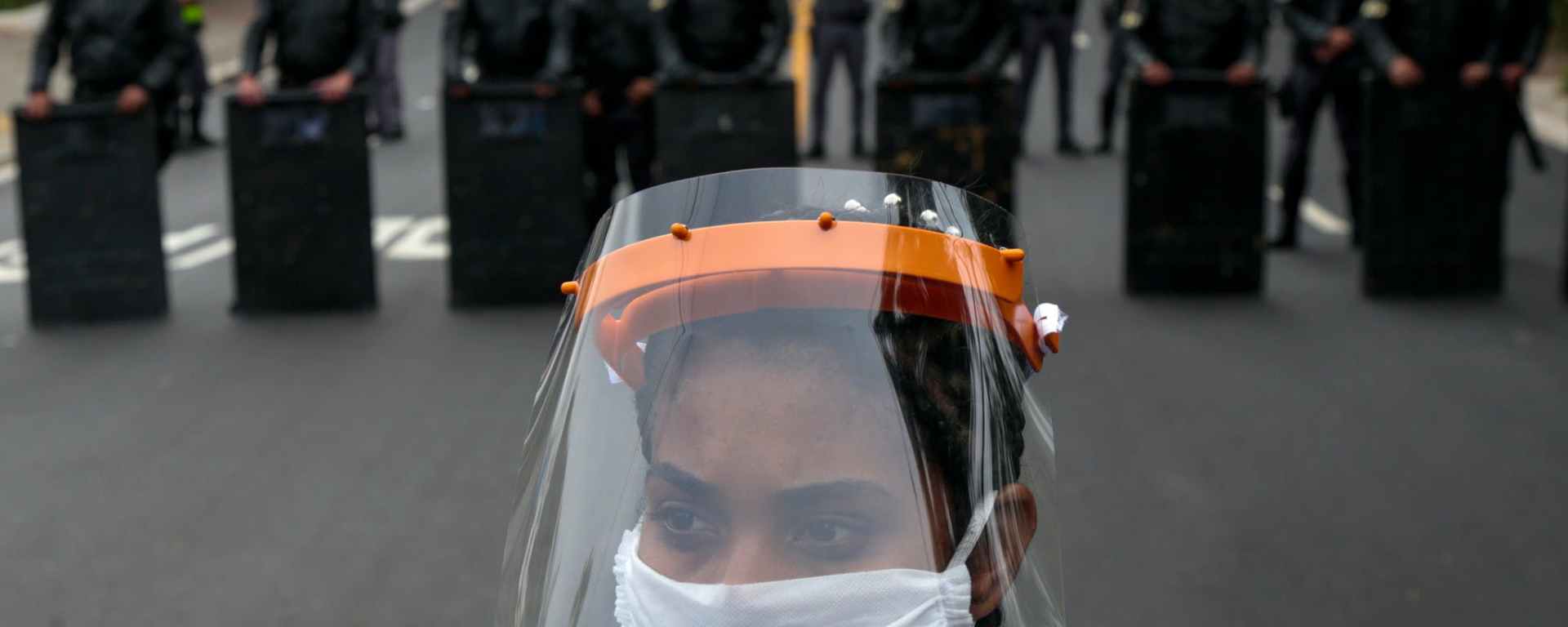 Une habitante de Paraisopolis, l’un des plus grands bidonvilles de la Sao Paulo, participe à une manifestation, le 18 mai 2020, pour demander plus d’aide au gouvernement de l’État de Sao Paulo pendant la pandémie de coronavirus Covid-19 © Miguel SCHINCARIOL / AFP