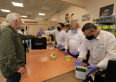 Cette action permet de distribuer une centaine de repas par jour, un chiffre à la baisse en comparaison des autres années. Selon Gérard Forcheri, président du Fourneau économique depuis dix ans, le fonctionnement est complètement bouleversé par la crise sanitaire. La distribution se fait dans le respect des gestes barrières : les personnes font la queue dehors, récupèrent leur repas, échangent quelques mots avec les chefs et les bénévoles puis ressortent par une deuxième porte, afin de fluidifier la circulation. « Lorsqu’il n’y avait pas cette pandémie on servait les repas à table. En bas il y a une cuisine et une grande salle de restaurant. On pouvait servir environ 150 repas par jour. Du coup, on a moins de petits retraités, parce qu’on ne les sert plus à table. Là ils sont debout et prennent juste leur panier » regrette M. Forcheri.
