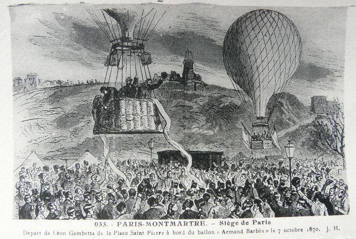 Le 7 octobre 1870, Léon Gambetta, ministre de la guerre, s’envole au dessus de Paris pour négocier avec le gouvernement à Bordeaux, la continuité des combats.