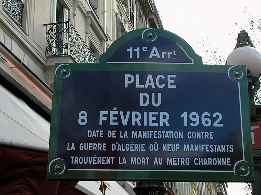 Le 8 février 1962, trois femmes et six hommes de 16 à 58 ans perdent la vie lors de cette manifestation. Sous l’autorité du préfet Maurice Papon, les forces de l’ordre répriment violemment les manifestants qui se regroupent au sein de la station de métro Charonne. Les victimes sont toutes syndiquées à la CGT et huit d’entre elles étaient membres du Parti communiste français.