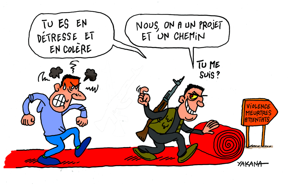 Le phénomène de radicalisation est complexe. Les auteurs de l’embrigadement utilisent des techniques qui ciblent précisément l’individu. « Il n’y a pas de profil type », explique Dounia Bouzar au sujet des victimes. L’un veut rendre le monde plus juste, l’autre est altruiste prêt à faire de l’humanitaire, certains veulent se venger, ne sont pas à leur place dans ce monde. Ils ne sont pas forcément musulmans, « j’ai vu des enfants du XVIe arrondissement de Paris essayer de partir, Daech a été très fin dans ce que j’appelle « l’individualisation de l’offre » ». C’est par la production de promesses mensongères qui s’adaptent à chaque cas que Daech est parvenu à étendre son influence. L’organisation terroriste s’est appropriée l’individualité de chaque personne,« c’est comme si l’identité du groupe radical avait remplacé l’identité de l’individu ».