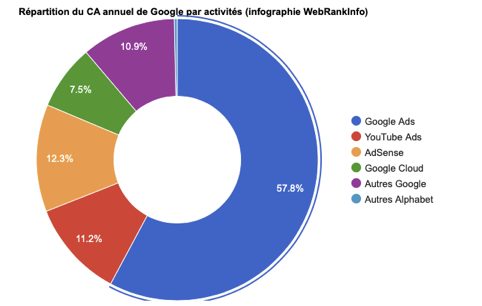 ︎︎︎︎︎︎︎De plus en plus de marques se sont mises à travailler avec le moteur de recherche ainsi que la plateforme de vidéo Youtube. Les publicités sont présentes en masse et constituent︎︎︎︎︎︎︎︎︎︎︎ la principale source de revenu de Google.︎︎︎︎︎︎︎︎︎ ︎︎︎︎︎︎︎︎Google a dégagé 209,5 milliards de dollars pour la publicité soit 81.6% de son chiffre d’affaires. Les annonceurs du secteur de la distribution sont les plus gros contributeurs, suivis par ceux de la finance, du divertissement et du tourisme. Par exemple, en payant Google, une agence de tourisme sera placée tout en haut de la page lorsqu’un utilisateur fait une recherche pour un voyage. L’agence a ainsi plus de chances d’être sollicitée que si elle se trouvait tout en bas de la page Google. Sur Youtube c’est le même principe.