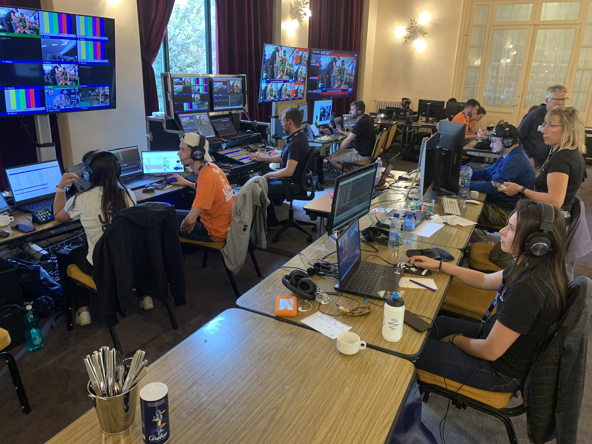 « On diffuse en français, anglais, espagnol, japonais, chinois et cette année on a ajouté le Thaïlandais ! » énumère Floris Calori. Un multilinguisme qui complexifie le montage technique : « On doit d’abord produire un international – un programme avec les images brutes et les titres – qu’on envoie ensuite aux différentes langues et aux télévisions comme l’Équipe 21 ».