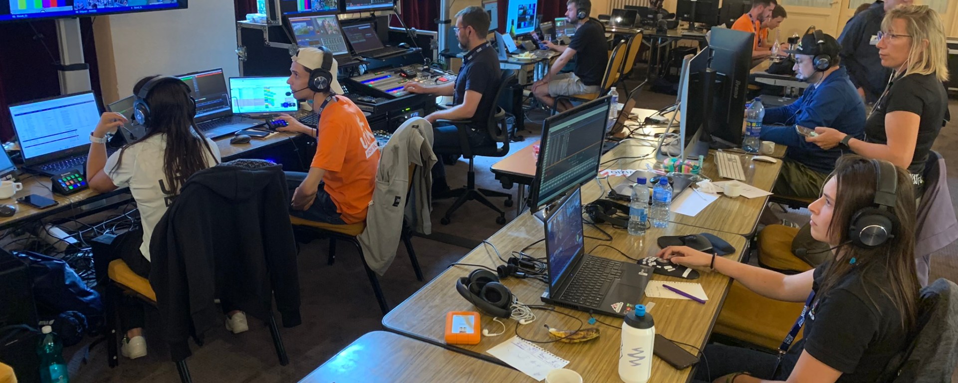 En régie aussi les innovations sont nombreuses : « On a des systèmes hybrides et on utilise au maximum le réseau Ethernet pour réduire les câbles. Avant, on devait tirer des câbles en avant, en arrière… Maintenant, tout passe par un seul câble Ethernet, le même que sur votre box internet ! » explique Floris Calori. « Ça reste quand même un peu le bazar parfois ! » plaisante Gwenaëlle Rabbin. Reprenant son sérieux, elle enchaîne sur son poste : « Je m’assure en permanence de qui filme qui ! Par exemple, si le cadreur E est sur Mathieu Blanchard dans montée finale de l’UTMB Chamonix derrière Killian Jornett, j’indique qu’il est deuxième homme, je le titre Mathieu Blanchard, je vérifie le profil de la course, je vois si on a un écart disponible, etc. C’est le réalisateur qui décide ensuite ce qu’il montre. ». À l’aide d’automatisations nombreuses, de programmes informatiques, l’équipe régie occupe plusieurs postes à la fois : « On peut faire tourner un live à trois. ».