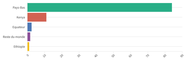Après les Pays-Bas, le Kenya, pays d’Afrique à des milliers de kilomètres de la France, est le deuxième pays qui exporte des roses dans l’Hexagone. Ces roses font évidemment le trajet en avion et par conséquent polluent beaucoup. Deux autres contrées lointaines, l’Equateur et l’Ethiopie sont les deux nations qui exportent le plus de roses en France derrière le Kenya et les Pays-Bas. Une utilisation massive de kérosène est nécessaire pour acheminer les roses.
