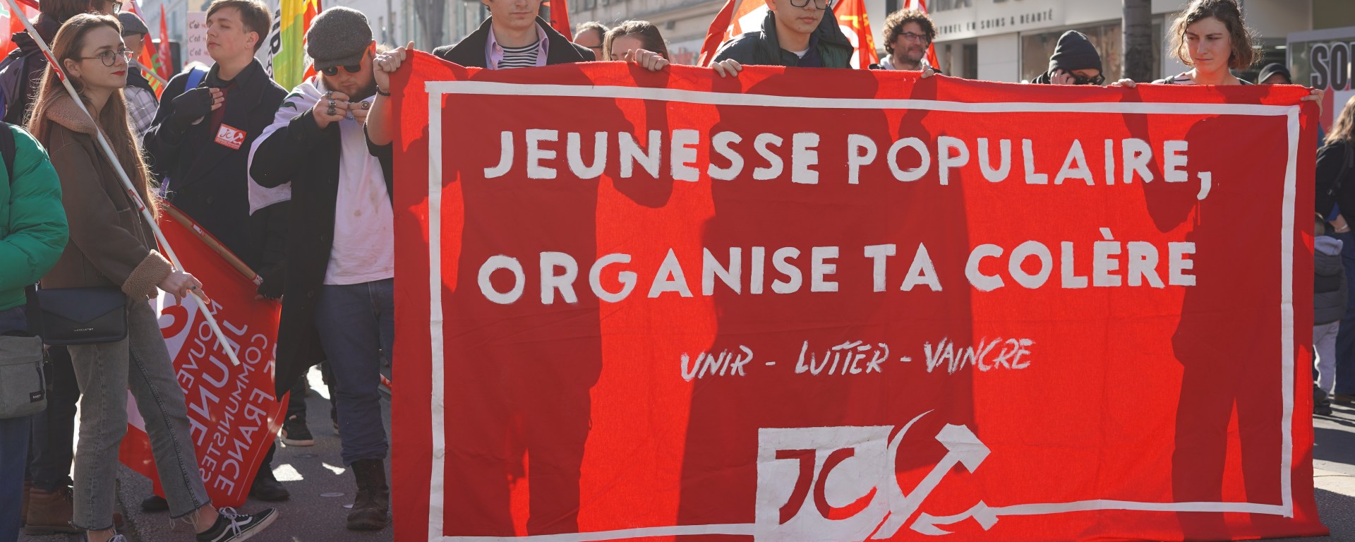 Tout autour de nous, on peut voir différents syndicats, la CGT, la CFDT, la FO et d’autres. Mais il y a aussi des syndicats étudiants comme le Mouvement Jeune Communiste de France (MJCF).