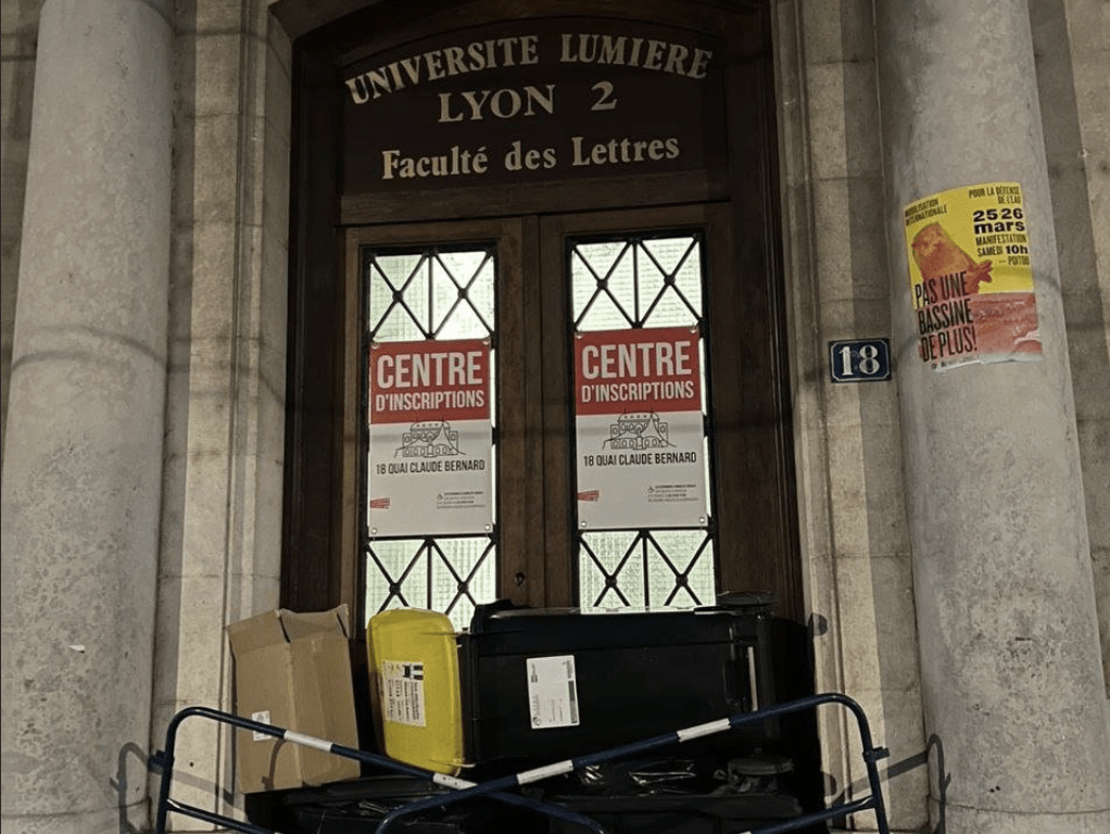 Blocus par les étudiants de l’Université Lyon 2. Crédit : Twitter.