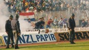Sepp Blatter, alors président de la FIFA, déclarait en 2008 : « Quand un nationalisme exacerbé s’ajoute à la passion et à l’émotion, cela devient explosif ». C’est la description idoine de ce Dinamo-Etoile Rouge de 1990. Depuis la mort de Tito en 1980, la Yougoslavie fait face à des tensions nationalistes tant de la part des croates que des serbes et des bosniens. Le 6 mai, le leader du parti nationaliste croate Franco Tudjman remporte les élections au Parlement. Hasard du calendrier, le Dinamo, plus grand club croate, reçoit l’Etoile Rouge, son alter ego et ennemi serbe, à peine une semaine plus tard. Trois mille membres du groupe de supporters du club de Belgrade, les Delije, se rendent à Zagreb. Un déplacement non motivé par leur passion du ballon rond. Les Delije exposent des slogans sans équivoque : « Zagreb est serbe », « nous tuerons Tudjman ». Les sièges du stade Maksimir de Zagreb sont lancés vers les fans du Dinamo, qui ne tardent pas à riposter. La police, sous l’égide du pouvoir central de Belgrade, réprime le groupe d’ultras du Dinamo, les Bad Blue Boys. S’ensuit une heure d’affrontements en tout genre sur la pelouse, entre croates, serbes et policiers. Le bilan sera de 138 blessés, mais miraculeusement, aucun mort n’est à déplorer. Le journaliste serbe Vladimir Novak expliquait que « c’est un événement qui a contribué à mettre le feu aux poudres. C’était le signe que le pays allait s’effondrer. Concrètement, ce match, c’était une guerre dans un stade de foot ». Ivan Osim, sélectionneur de la Yougoslavie à l’époque, déclarait : « On attendait qu’une bombe éclate. Elle a éclaté à Zagreb. » En août de la même année, la guerre d’indépendance de la Croatie fut déclarée, avec comme épicentre le stade Maksimir de Zagreb.